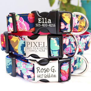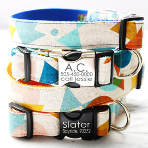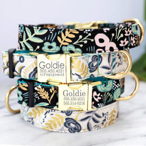 If you have an active social pup, the Buttercup is a great option! Still incredibly stylish, this dog collar does double duty by also being dirt and water resistant. The watercolor floral pattern is as pretty as can be but can withstand a roll in the grass with her friends as well.