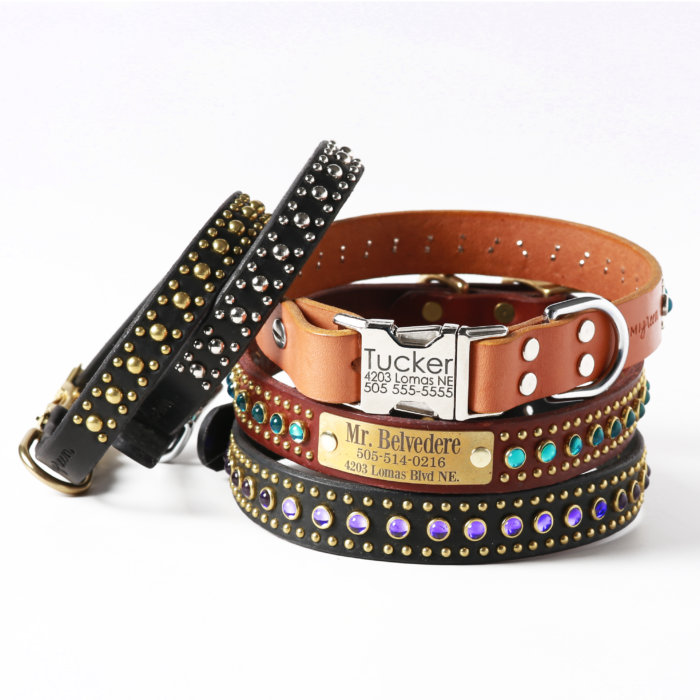 The first time we saw this collar, we were speechless. The beauty of the intricately colored studs is unlike any other collar on the market. If you or your dog is a fan of leather but wants to stray from tradition, this is the collar for you!