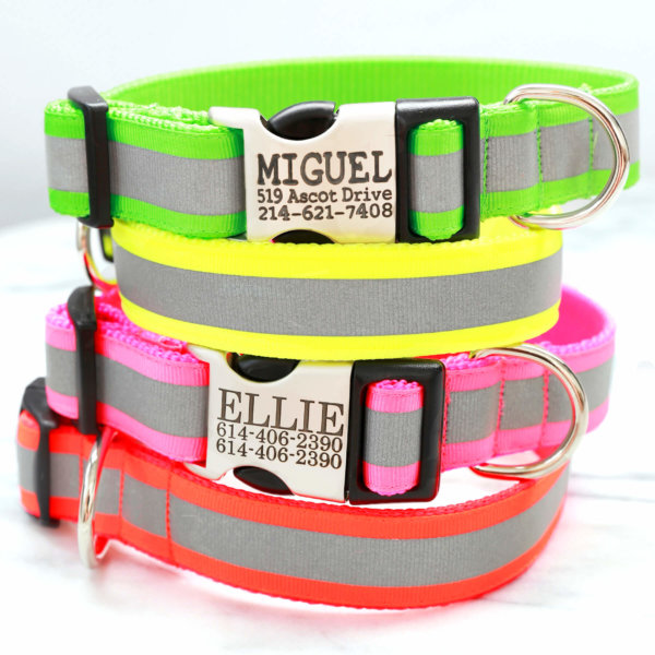 13. Reflective Dog Collar with Engraved Personalized Buckle