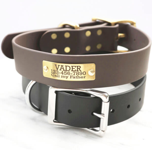 Love leather, but need a vegan, waterproof option? This collar is for you. It exhibits the class of leather while also being adequately prepared for any water activities that may come your way. It’s the ideal minimal maintenance collar!