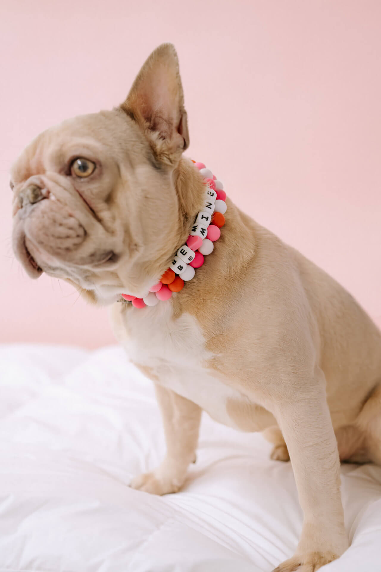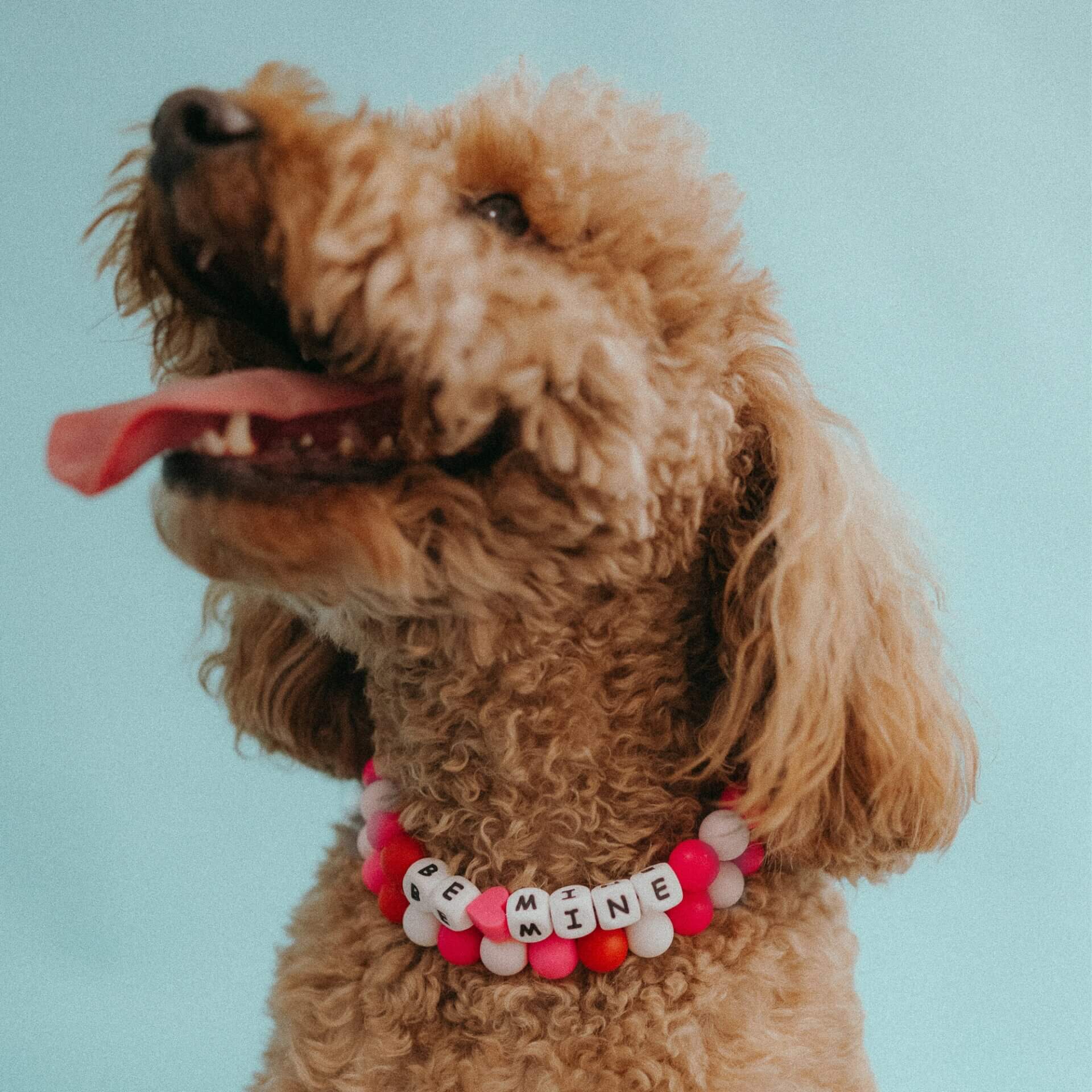 - Can have a cute phrase instead ‘Be Mine’ of your pups name, get creative 💖 We like “Loved, XOXO, Cutie Pie, Kiss Me”