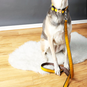 The Mimi Green designer Velvet Dog Collar in ‘Belle’ mustard gold is a luxe and elegant way to show off your pup’s personality!