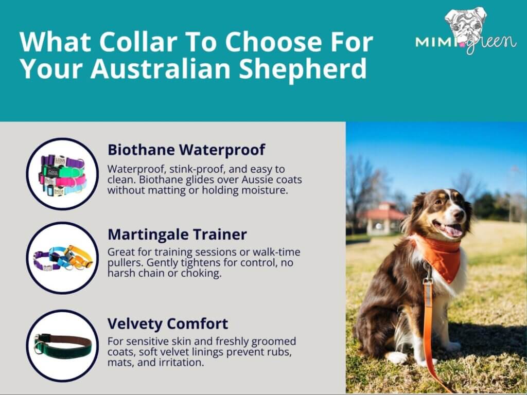 - What collars prevent matting? Leather and smooth Biothane styles are your best bet. Their low-friction design keeps your Aussie’s thick coat tangle-free.