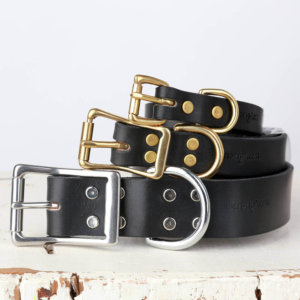 Mimi Green’s classic black leather dog collar is strong, stylish, and handcrafted with love in our studios in Albuquerque, New Mexico. Our Classic Leather Collection is that perfect mix of fashionable and durable. This black leather paired with either brass or stainless steel hardware gives these collars a classic look and feel that never goes out of style.