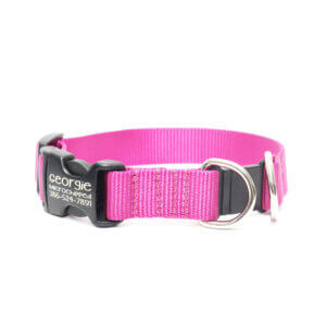- Personalized buckle collar with 2-3 lines laser engraving on the buckle with a maximum of 15 characters per line