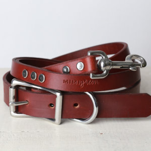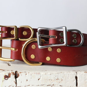 Mimi Green’s classic brown leather dog collar is strong, stylish, and handcrafted with love in our studios in Albuquerque, New Mexico. Our Classic Leather Collection is that perfect mix of fashionable and durable. This deep brown leather paired with either brass or stainless steel hardware gives these collars a classic look and feel that never goes out of style.