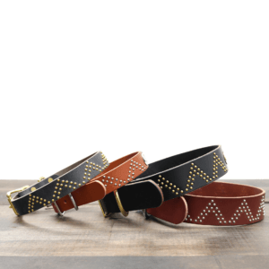 Our custom studded leather collar is available in 2 widths, 10 colors and 8 lengths, you are sure to find a size that is right for you.