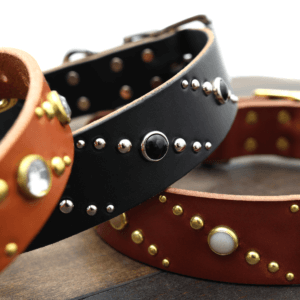 Our custom studded leather collar is available in 2 widths, 9 colors and 8 lengths, you are sure to find a size that is right for you.