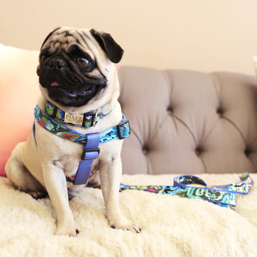 Step in? That’s right –all your dog has to do is step in their front legs, you pull up and snap, and you two are ready to go. Couldn’t be easier OR better looking!