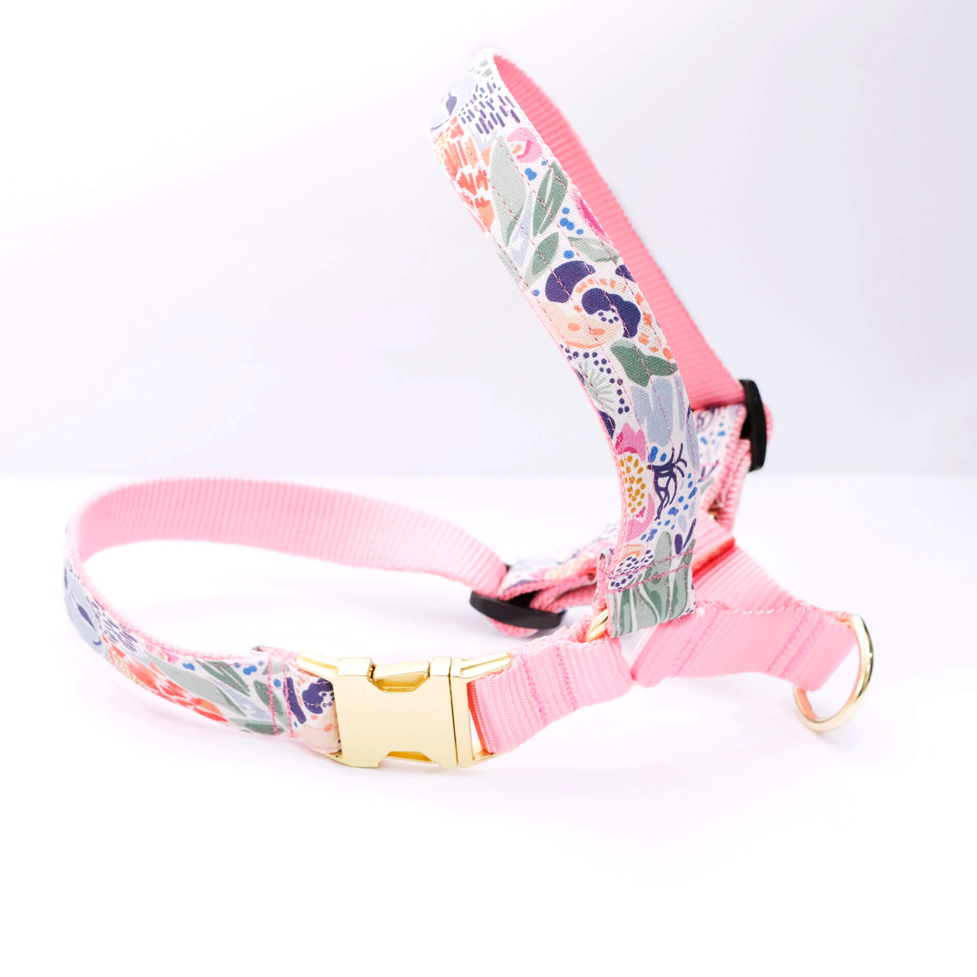 Easy On Floral Canvas Dog Harness with Optional Engraved Buckle