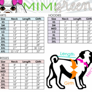 - This beautiful shirt comes in 7 sizes, just measure their girth and neck size. XS- 6XL (yes it may seem weird that your pug would wear a Large or XL but if you measure you will get the perfect fit!)