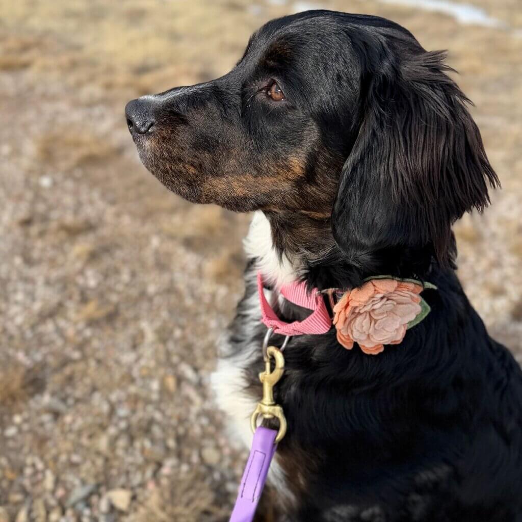 We love our Mimi Green collars! Our girl just got one of the flowers to go with her new Fi Martingale, and she gets so many compliments!