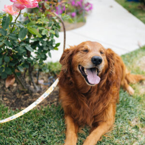 Bright, cheery, feminine and fun – our new ‘Hazel’ dog collar is made with our signature voile fabric with a gorgeous floral pattern. We love it on our sunshine yellow webbing, but choose from over 20 options for a collar as unique as your pup.