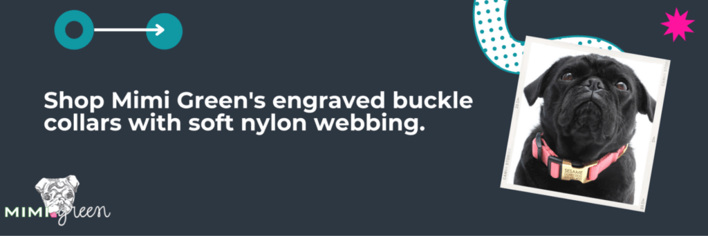 - Custom Engraved Buckle Collars: Collars like the Mimi Green engraved buckle styles keep your contact info secured and readable, right on the collar.