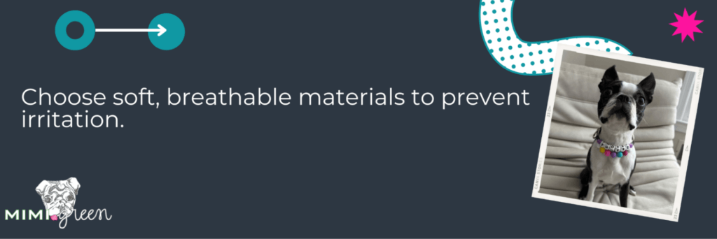 - Use materials like velvet, BioThane®, and hypoallergenic cotton for comfort and durability