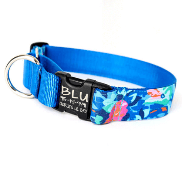 You can also mix and match styles: a waterproof Biothane® leash with a velvet martingale, or a custom engraved buckle collar with a floral leash for spring.