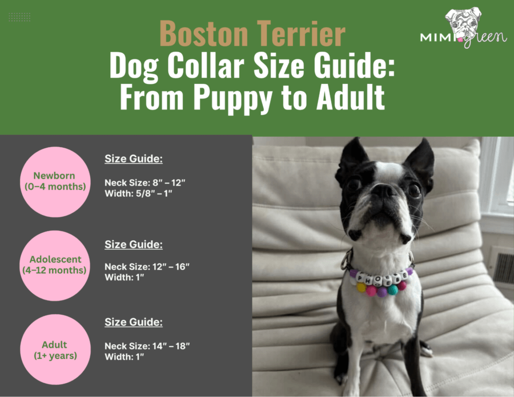 - Round up slightly for adjustability, especially if your Boston is still growing.