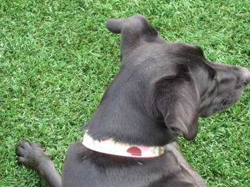 Bella loves her new collar. It looks sharp against her black coat and is feminine but not too feminine. Thank you!!