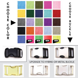 We are experts when it comes to making sure your dog is in style, but we also know how important it is to keep your pup safe. With our Laser Engraved Personalized Webbing Dog Collar, the best of both worlds collide to create a super good looking dog collar with all your dog’s important info engraved right onto the buckle!