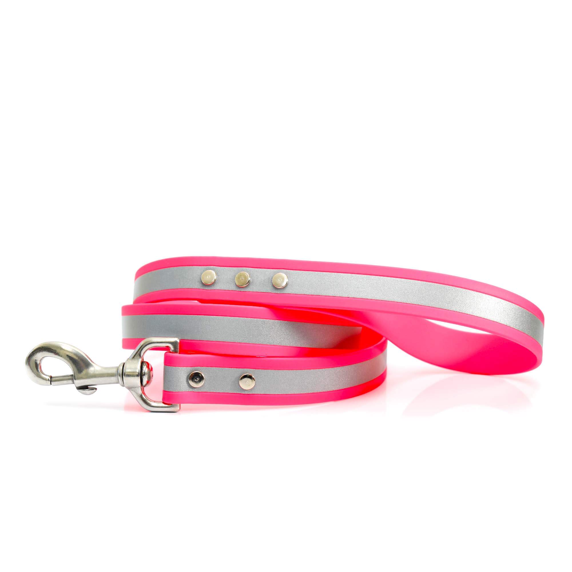 Our reflective waterproof dog leash is handcrafted with love in our studios in Albuquerque, New Mexico out of waterproof webbing. Expect this leash to be strong, fashionable and long lasting. The webbing has a highly reflective strip on the collar for safety and night time protection.