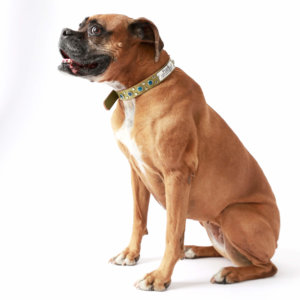 1.5″ Wide Leather Dog Collar with Engraved Riveted Nameplate